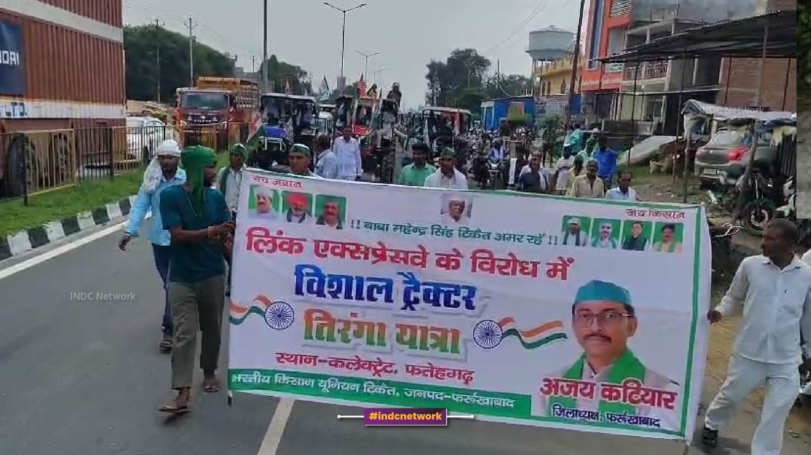 INDC Network : फर्रुखाबाद, उत्तर प्रदेश : आज दिनांक 13 अगस्त को राष्ट्रीय आह्वान पर फर्रुखाबाद में किसानों ने ट्रैक्टर तिरंगा यात्रा का आयोजन किया। सात किलोमीटर लंबी इस यात्रा में किसानों ने लिंक एक्सप्रेसवे के विरोध और गंगा नदी पर बांध निर्माण की मांग को प्रमुखता से उठाया। यात्रा का समापन सातनपुर आलू मंडी में हुआ, जहां किसानों ने पंद्रह सूत्रीय राष्ट्रीय ज्ञापन और पंद्रह सूत्रीय जिला स्तरीय ज्ञापन जिला अधिकारी के नाम नगर मजिस्ट्रेट को सौंपा
